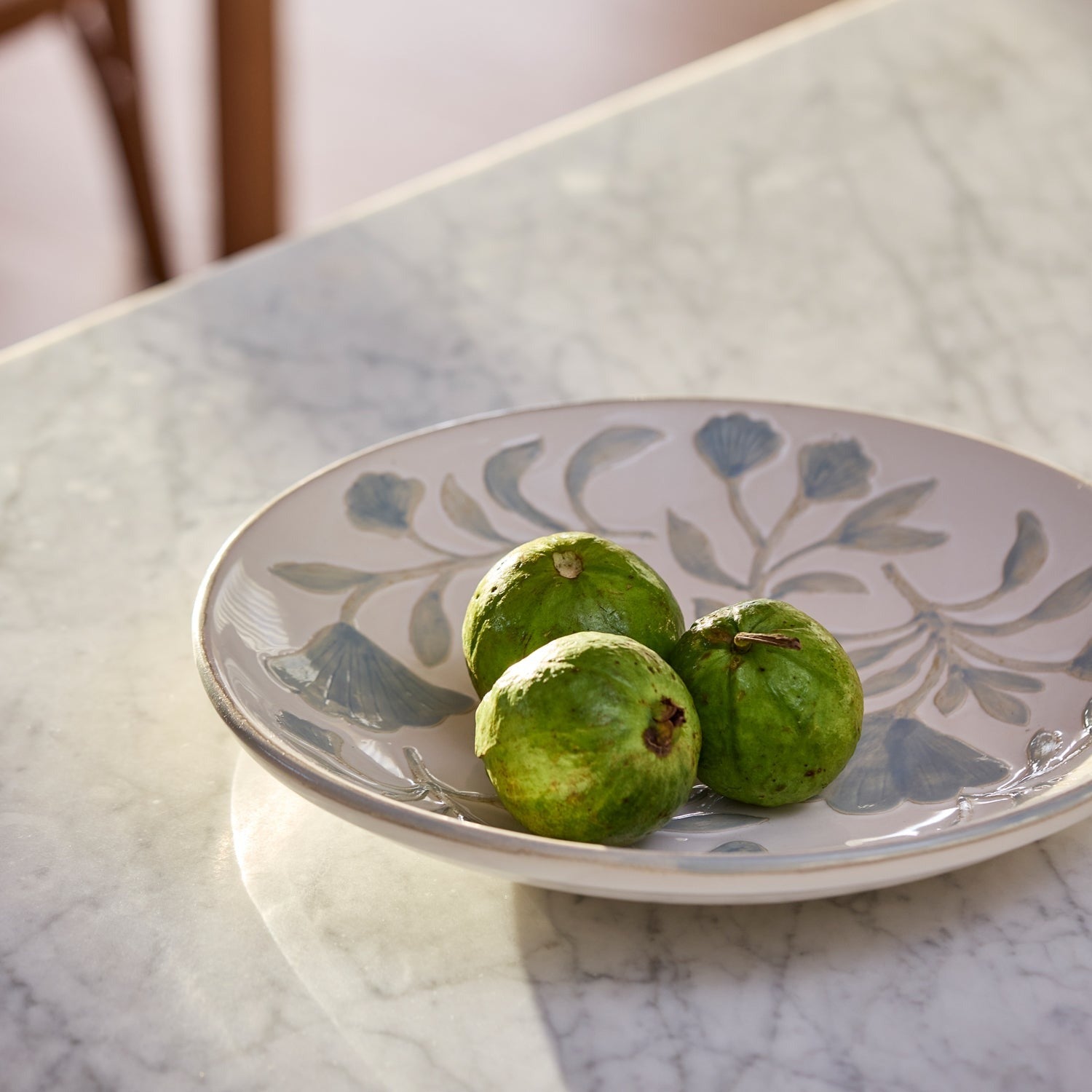 A timeless piece for every table. This white ceramic platter features hand-painted, debossed blue florals that add a delicate touch of charm and craftsmanship. Perfect for serving antipasto, fresh fruit, or desserts, it brings elegance and warmth to any occasion. Its classic design makes it just as beautiful on display as it is in use.