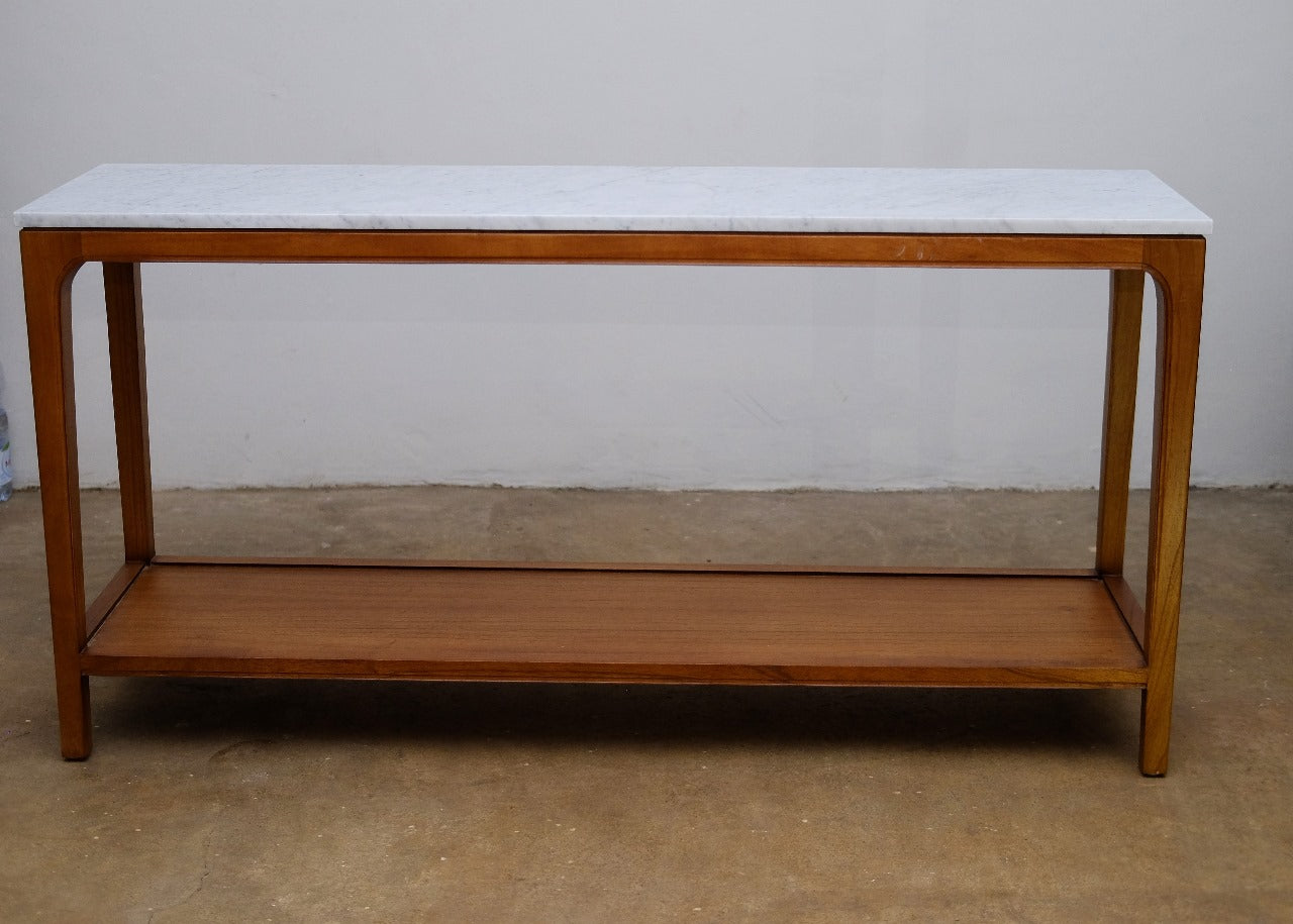 The Mia Console is a striking statement piece, combining the natural warmth of Mindi wood with the timeless elegance of Carrara marble. Perfect for an entryway or hallway, this console brings effortless sophistication to your space and is sure to spark compliments from every guest.