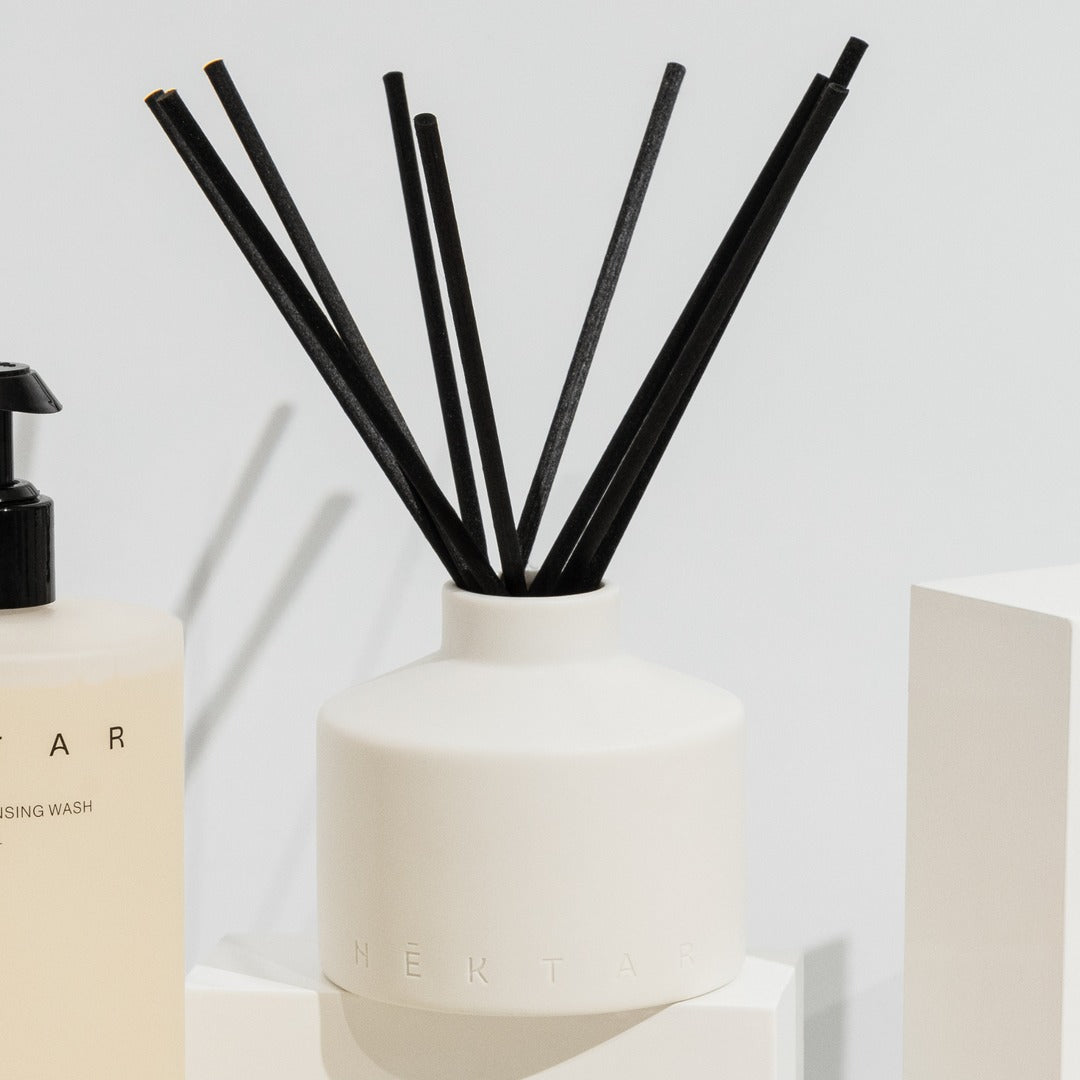 Elevate your space with the Nēktar Reed Diffuser, a premium blend of natural scents and sophisticated design. Hand-poured in small batches in Australia, this diffuser offers a long-lasting fragrance experience with up to 5 months of scent life. It effortlessly enhances any space with its elegant aroma.