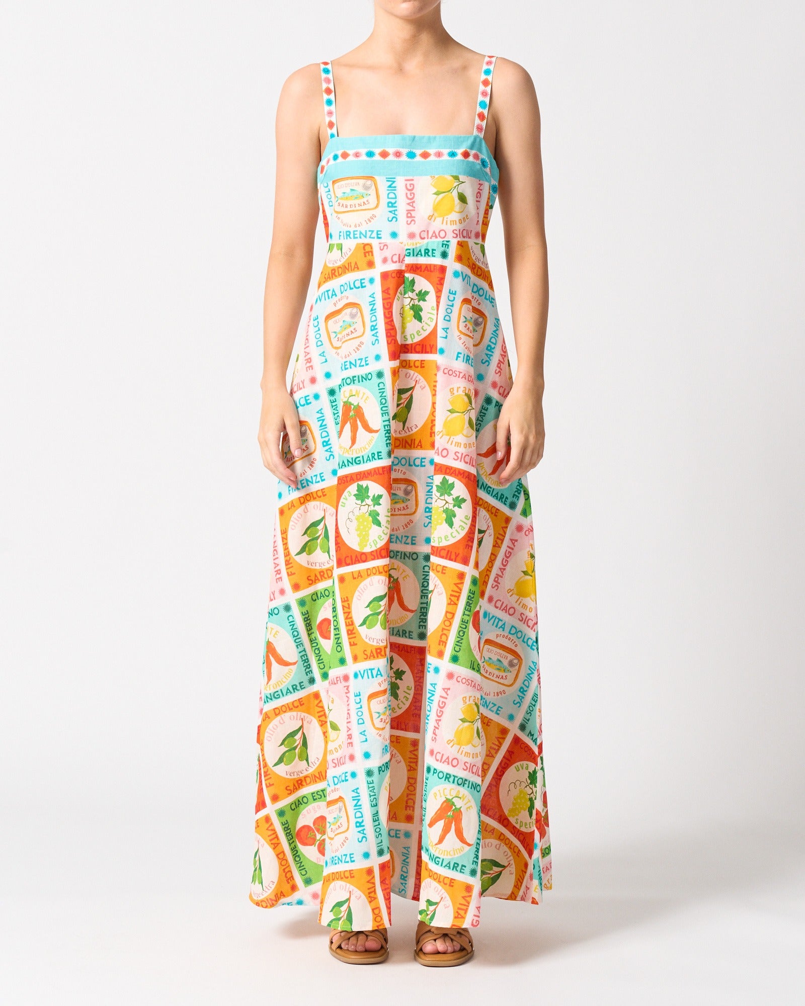 The Milan dress is a stunning flowy maxi style featuring adjustable thin straps, practical side pockets, a convenient back zip closure, and crafted from light, breathable fabric, making it the ideal choice for warm weather occasions.