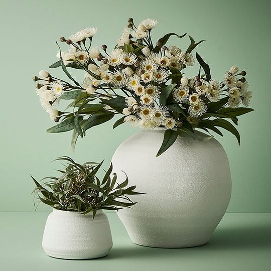 Explore our Natives with the Eucalyptus Flowering Spray, adorned with beautiful white flowers. This exquisite stem brings the beauty of nature indoors, offering a touch of elegance that lasts without the need for upkeep.