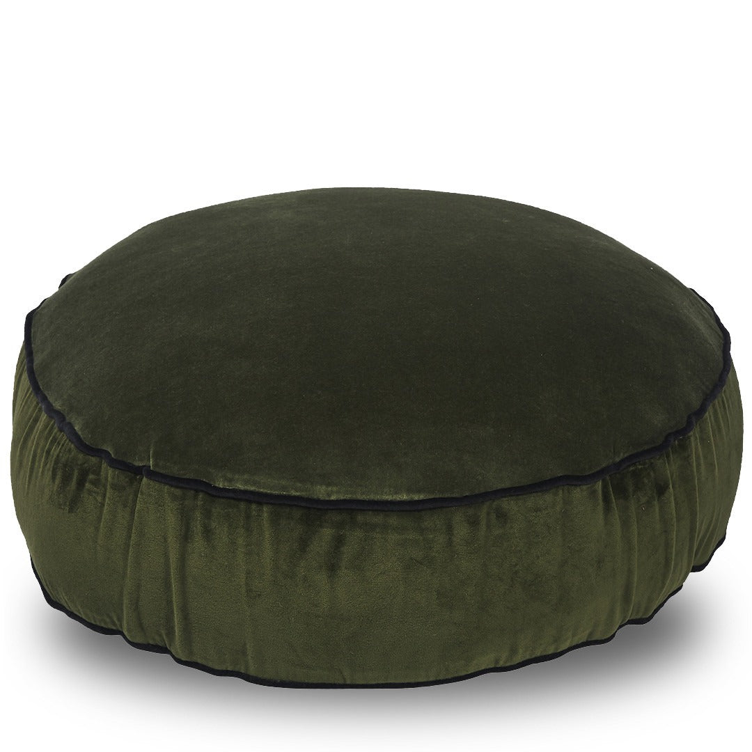 The Classic Round Floor Cushion is finished in a velvet with piping.