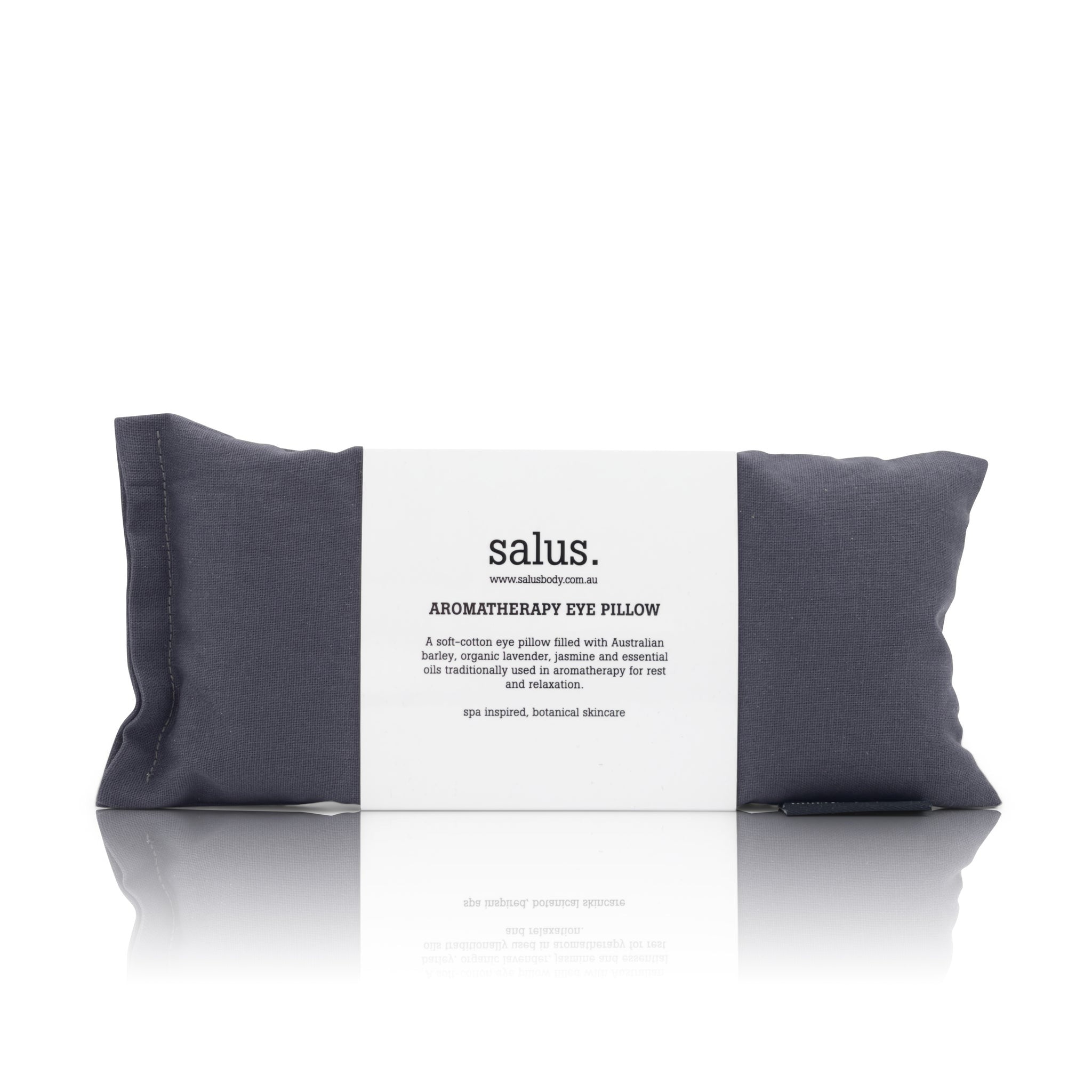 A soft-cotton eye pillow filled with Australian barley, organic lavender, jasmine and essential oils traditionally used in aromatherapy for rest and relaxation. Measurements: 18.5cm x 8.5cm