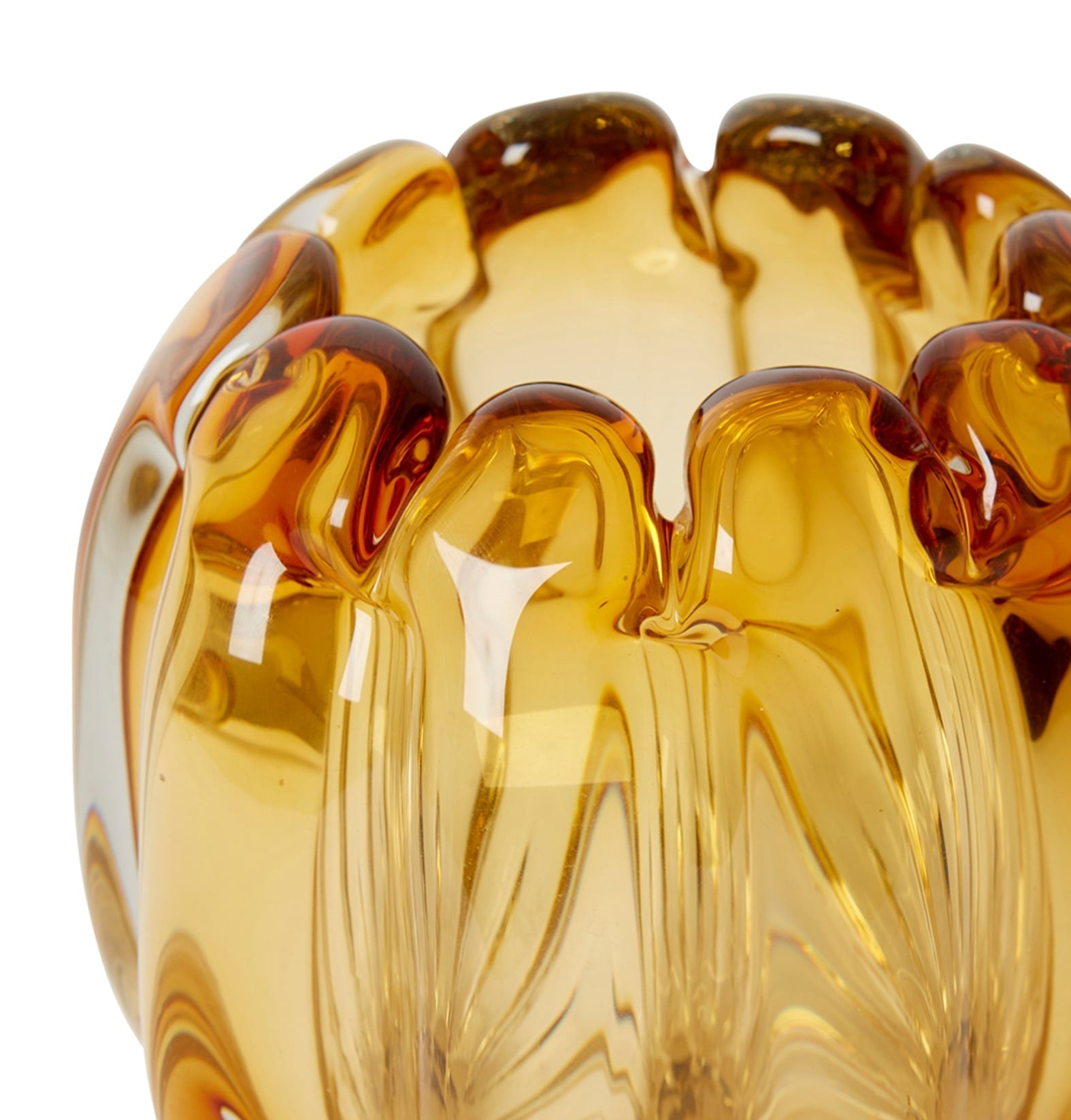 Small in size but big on style, the Thandie Vase adds a warm, golden glow to any space. Made from glass in a rich amber hue, it’s perfect for a short stem or as a stand alone decorative piece. A simple yet striking accent to enhance shelves, sideboards, or bedside tables.