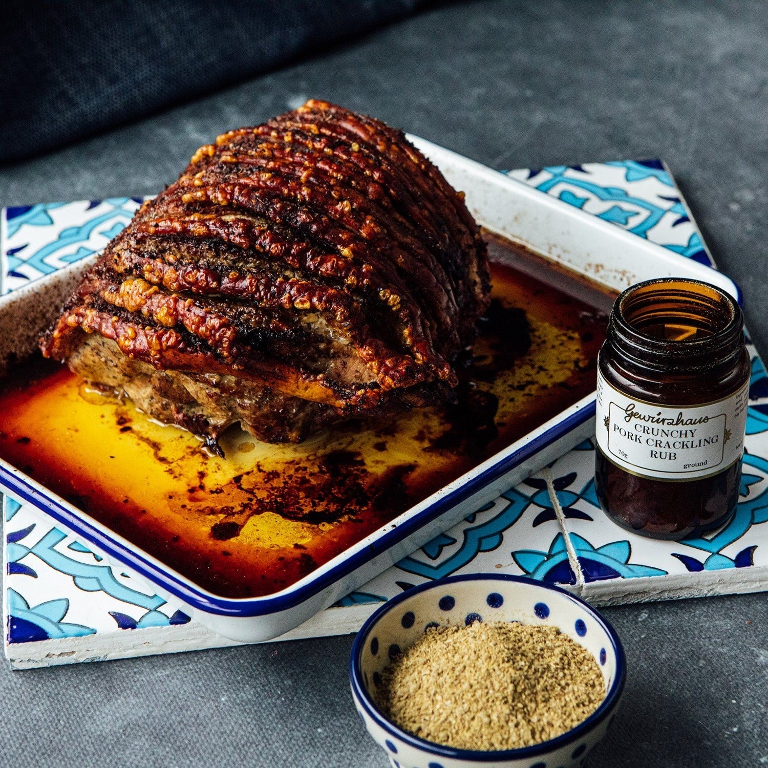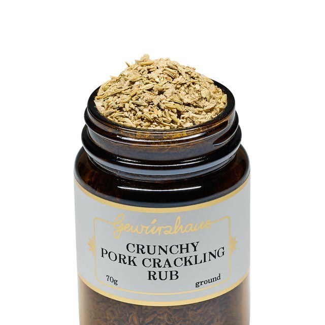 Rubbed into the cuts of pork skin, it creates the crunchiest, tastiest crackling you may have ever tasted. All you need is three to four teaspoons of this rub plus pork – nothing else.
