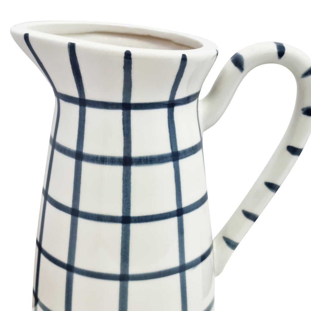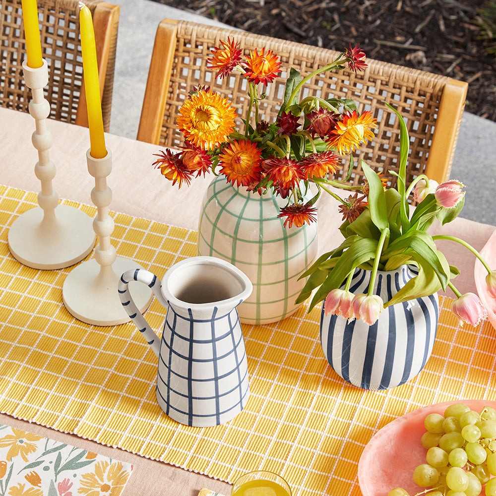 Introducing our new series of stoneware vases, boasting contemporary elegance. Each vase is adorned with meticulously hand-painted strokes, featuring stripe or check patterns. Available in an array of interesting shapes and sizes, these vases command attention as striking focal points in any space. Choose from three fun colourways: Bubblegum or Navy.
