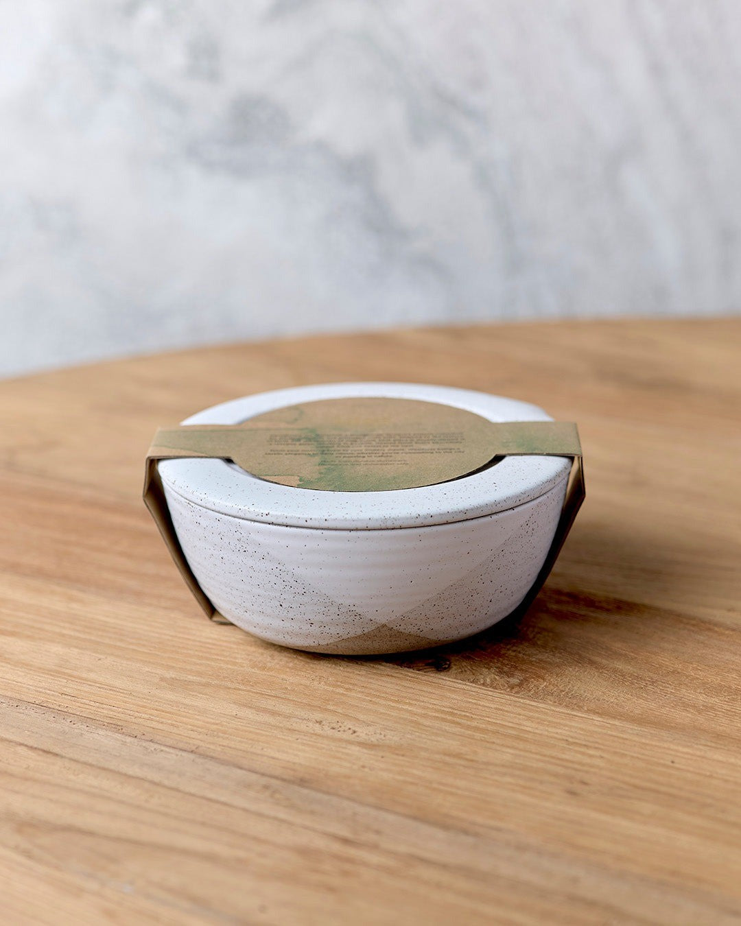 This White Speckle 1 Litre Container from The Wanderer collection is designed for life on the move. The lidded lunch bowl features a matching ceramic lid, making it both microwave safe and built to last.
