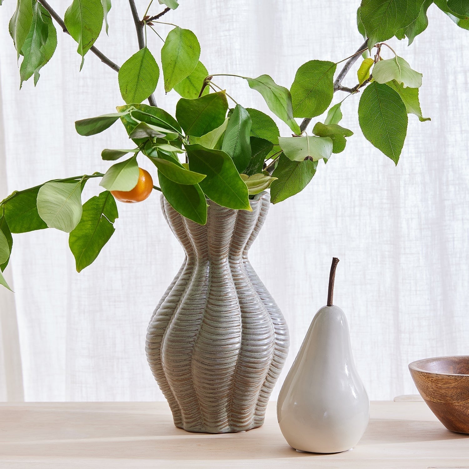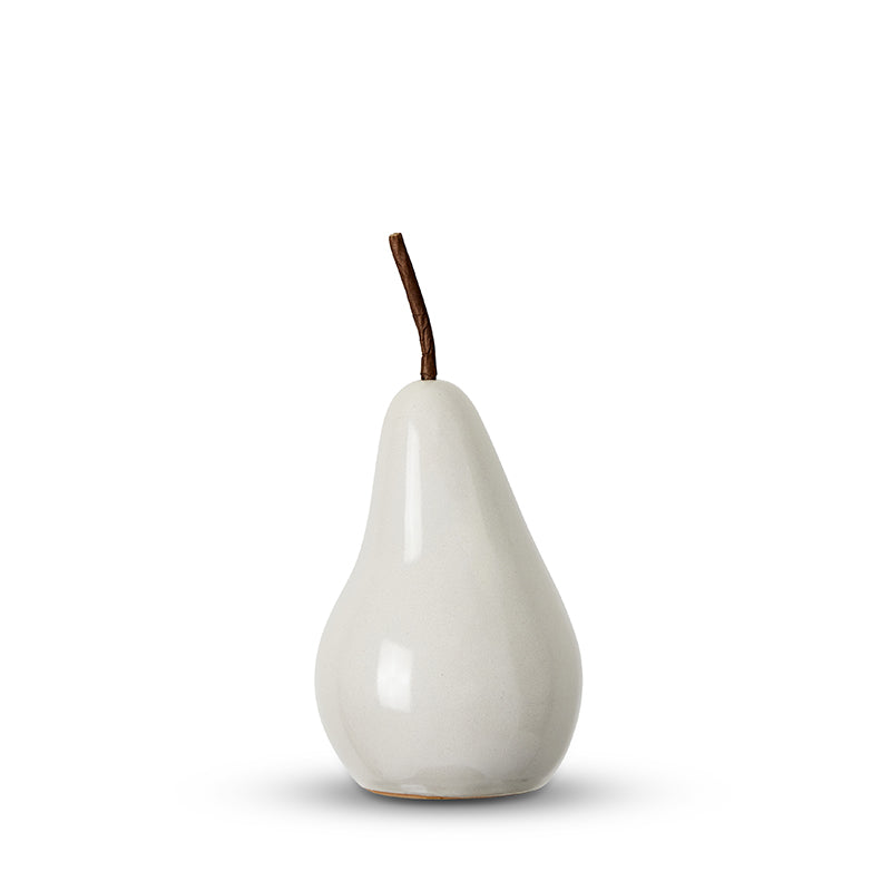 Elegant and timeless, The Bosc Pear is a classic ceramic décor piece with a smooth, glossy finish. Style it solo or pair both sizes together for a chic, sculptural accent on shelves, sideboards or dining tables.